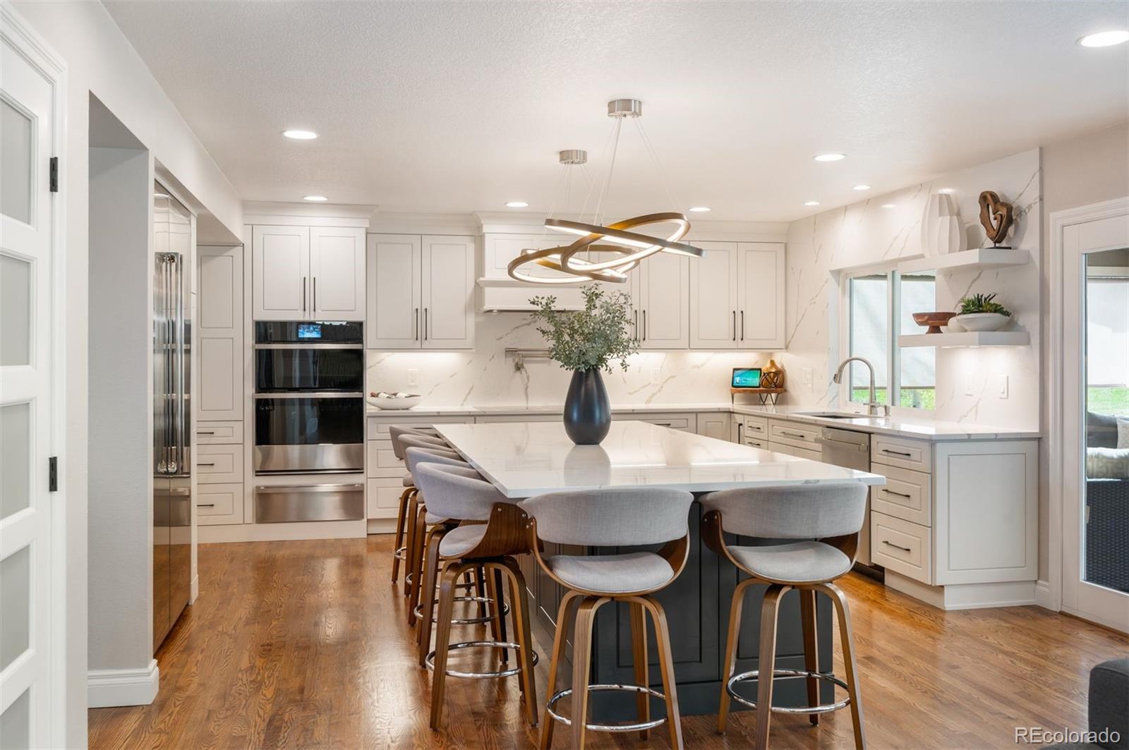 Stunningly remodeled from top to bottom, this luxurious home offers exceptional design, craftsmanship, and comfort. The gourmet kitchen, remodeled in 2021 with over $150K invested, features Jenn-Air Professional Series appliances, a 48" x 7' built-in refrigerator, custom cabinetry, a massive 10'+ island, quartz counters, full backsplash, and Blanco Anthracite sink with Moen pot filler.